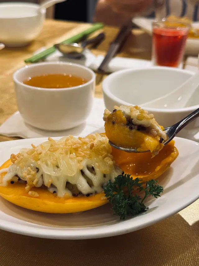 芒果季🤗估唔到唔係用黎整甜品!每人半邊和暖芒果,盛載住好有飽腹感既藜麥,芒果既清甜爽利仲成功balance到飽滯感,一啲都唔怪,反而少少似食緊芒果糯米飯😂!!