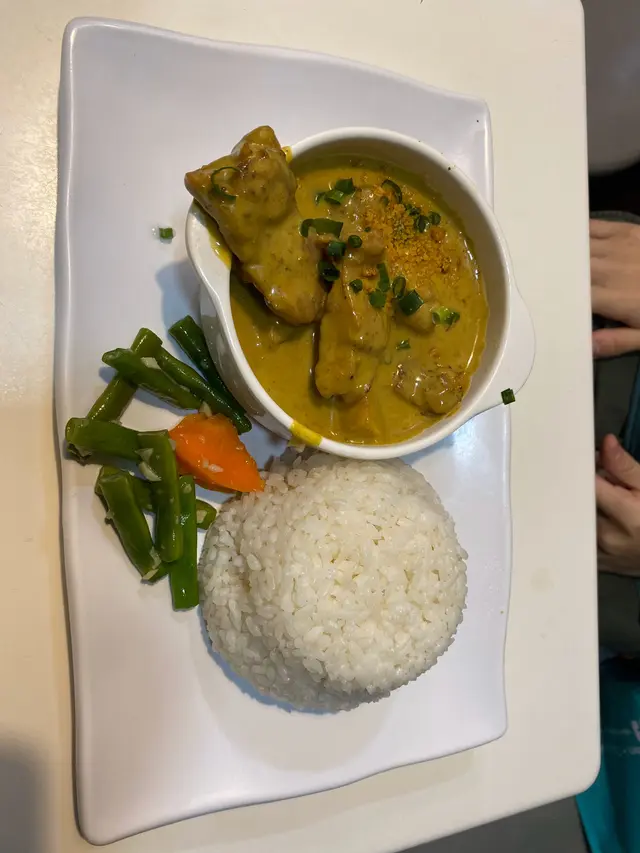 咖哩雞排飯🐥:咖哩汁另上是基本,濃濃椰汁香,似葡汁多於咖喱🍛,伴碟仲有四季豆同紅蘿蔔🥕,好似健康點咁,雞排比較焾身,呀婆都食到😂