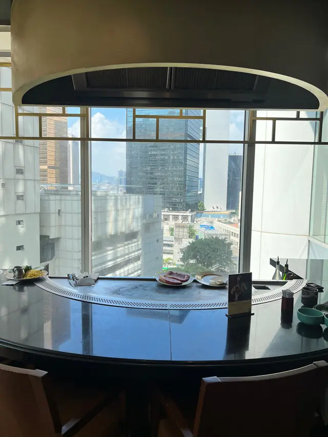 食鐵板燒的話會有另外一個用餐場景 餐桌係環迴式設計 有幾張枱都可以望到出面的城景/山景🌳點完菜之後 廚師會端出要燒的食物