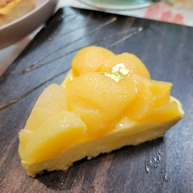 以為是日蛋糕會比hea野你?絕對唔係,當日係香桃撻,上面仲有金箔😍,唔會太甜,桃肉又多,好味😋