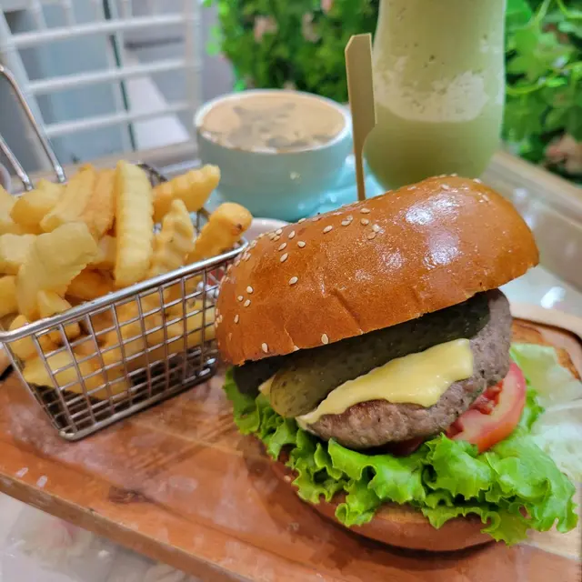 包身夠晒大個,漢堡包用咗芝麻包,外脆內鬆化,有搽牛油🧈👍🏻漢堡扒夠大塊,有牛味多肉汁🐮咬落層次同味道都Very Good😊
