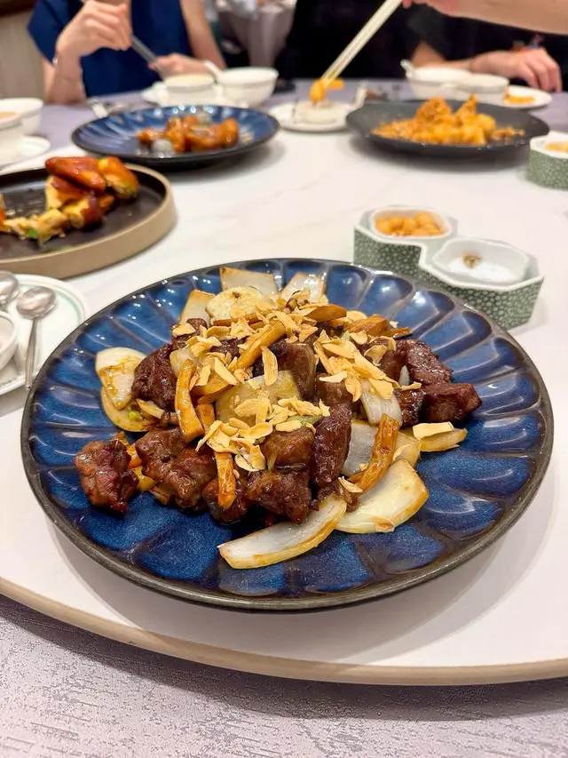 牛柳粒嫩腍,仲有杏鮑菇條,配埋蒜片,不錯
