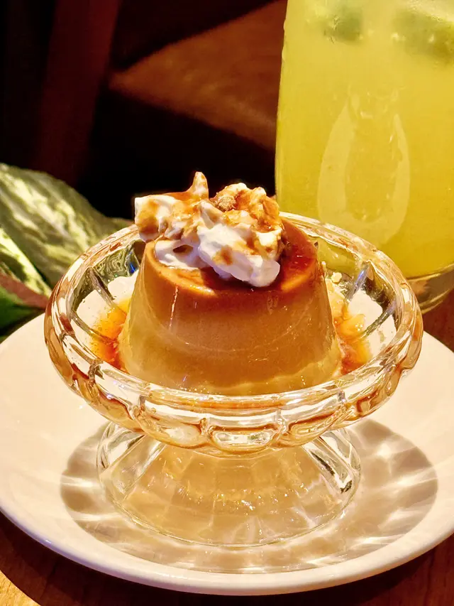 打卡必點的布丁,造型可愛,口感綿密,充滿黑糖香氣,甜而不膩。