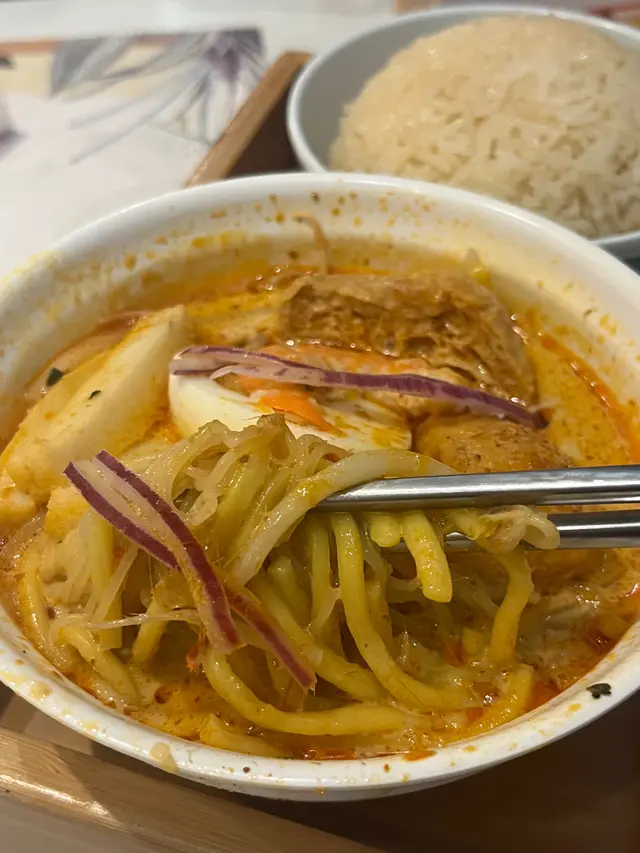 一次過試到兩樣嘢,好抵!海南雞飯嘅雞肉好嫩滑,雞皮又夠香,油飯都好夠味,喇沙嘅湯底就夠晒濃郁,帶有椰香味同辣味,好惹味🤤
