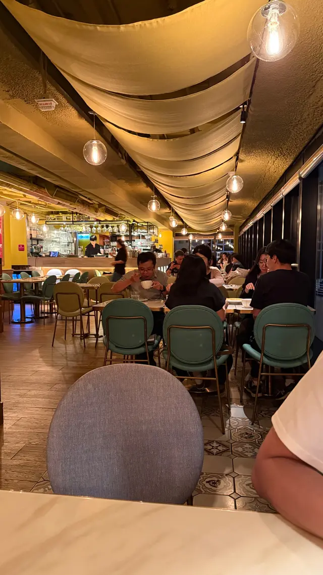 環境好有異國風情,🇪🇸燈光昏黃帶點浪漫,座位闊落又乾淨,隔住大玻璃就望到中環urban view城市美景🌆,打卡一流,chill住食慢慢傾都啱哂~