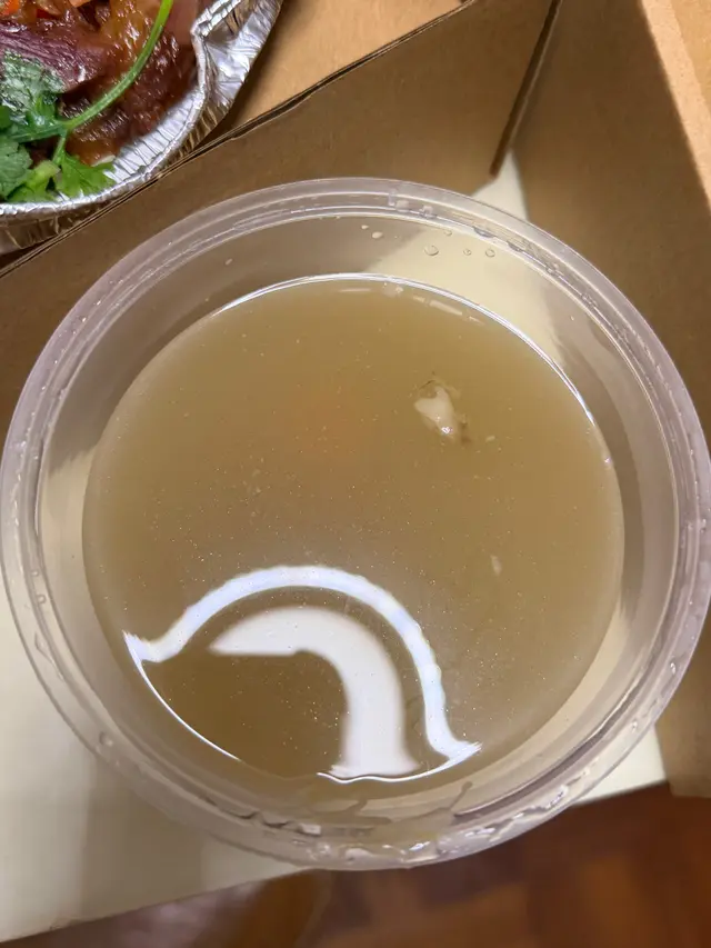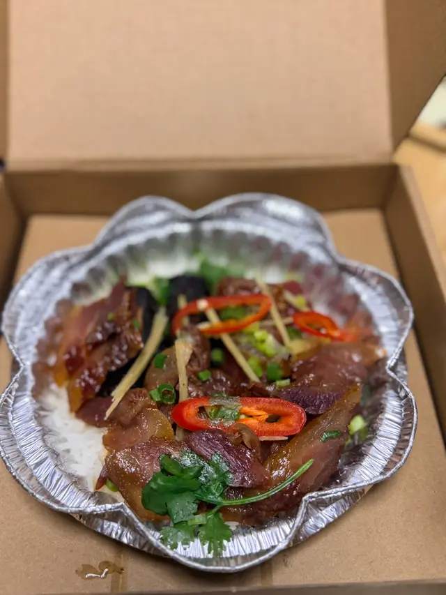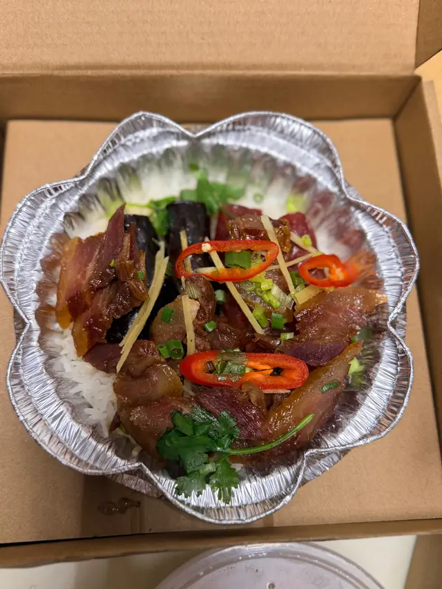 首先,我點咗臘味煲仔飯。呢碗飯真係一絕!臘味香氣撲鼻,粒粒飯都吸咗臘味嘅香味,食落去特別入味。煲仔飯嘅底部仲有一層香脆嘅鍋巴,咬落去嘎吱嘎吱,好正!配搭埋啲青菜,真係唔會覺得油膩,反而好有層次感。