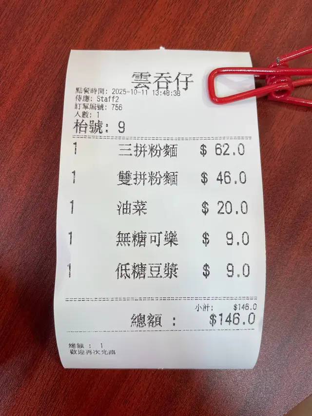 飲品就嗌咗低糖豆漿($9)同無糖可口可樂($9),雖然雲吞仔唔多嘢食揀,但性價比都真喺幾高😌