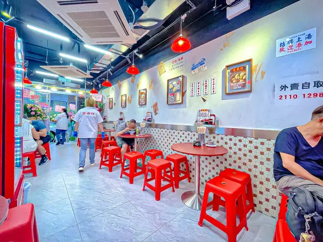 餐廳環境以六七十年代嘅香港做背景🇭🇰,懷舊嘅設計,包括霓虹燈牌、紅膠櫈、木製圓枱、天花吊燈等,好有情懷特色🤩