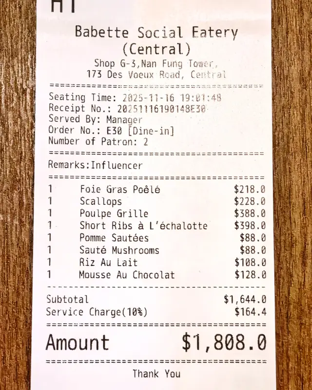 整體而言 Babette 係❤️用心打造嘅一間 high-end bistro,份量適中、👏手藝一流、食材選料認真、價錢💰合理,係中上環一間必訪地標📍。