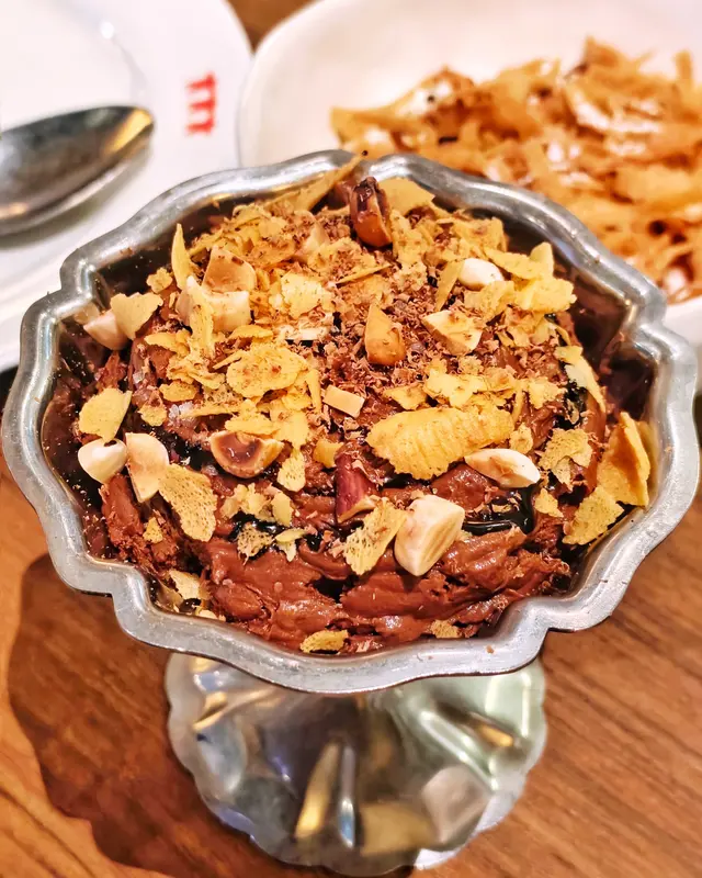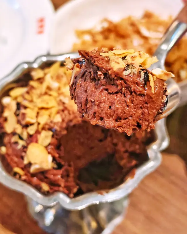 Mousse Au Chocolat ($128) 呢款🍫朱古力慕絲用咗70%朱古力,加上☕咖啡香嘅融入,配上脆片、🫘零陵香豆同烤焗果仁提供豐富口感😍,朱古力勁香濃又唔膩,完美!