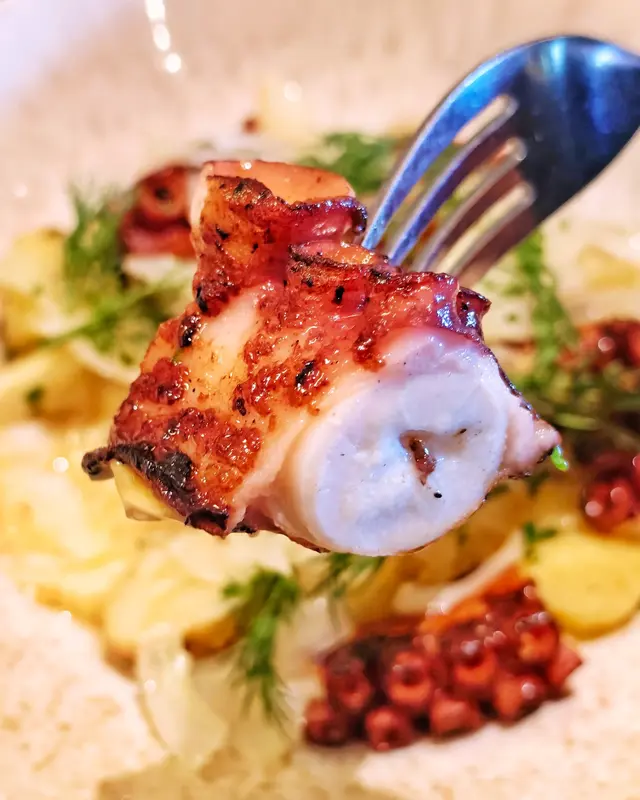 Poulape Grillé ($388) 係帶點🤤清爽風味嘅主菜,🔥火炙八爪魚帶著少少焦香,🐙肉質好鮮味好軟腍,配上香滑薯蓉、🧄蒜蓉蛋黃醬、茴香、橄欖油同埋刁草🌱,層次豐富好滋味!