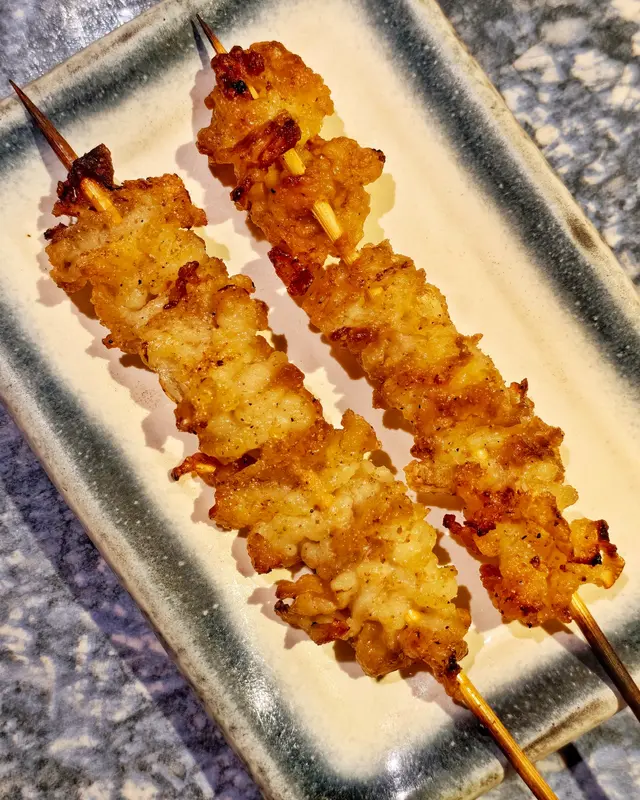 首先叫咗鹽燒原片雞皮🐔,大大塊雞皮燒到外層酥脆卜卜🤤,鹹香鹽燒味道一流👏,啖啖都充滿雞皮香🔥,而且一啲都唔油膩。