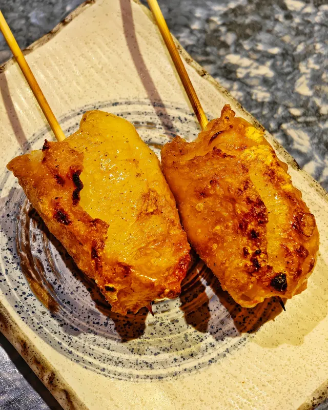 雞皮墨魚滑幾有驚喜😲,外面雞皮燒到好香脆🔥,入面包住彈牙鮮味墨魚滑🦑,配搭好特別又好夾👏。