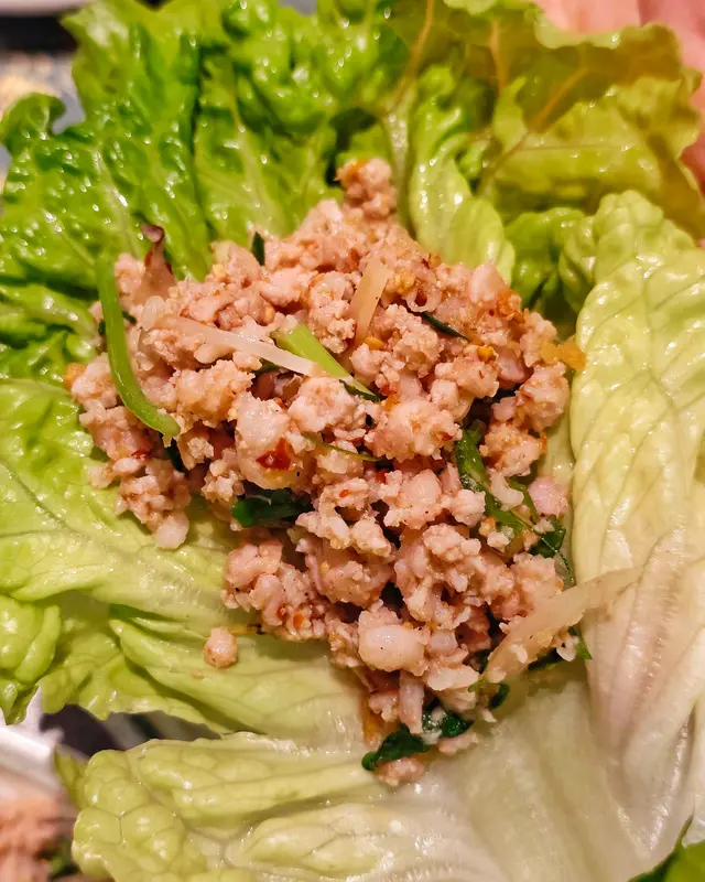 前菜我哋揀咗🇹🇭經典肉碎生菜包,肉碎以豬肉🥩配香菜、檸檬葉等炒香,包入爽脆生菜葉🥬,入口清新帶微酸微辣,口感層次好豐富🤤。