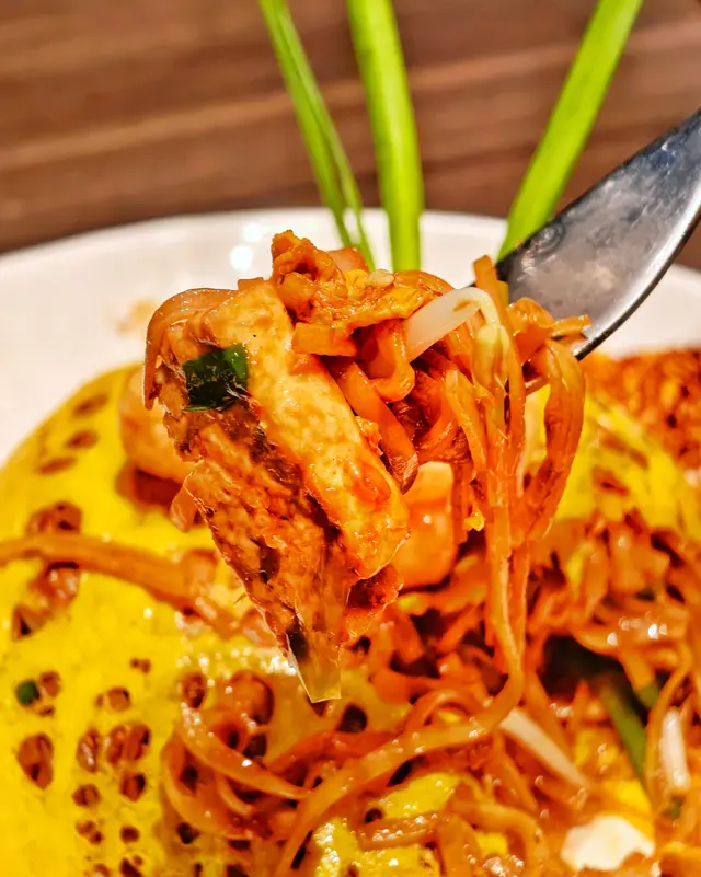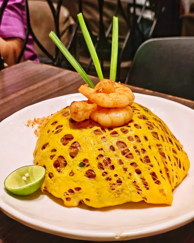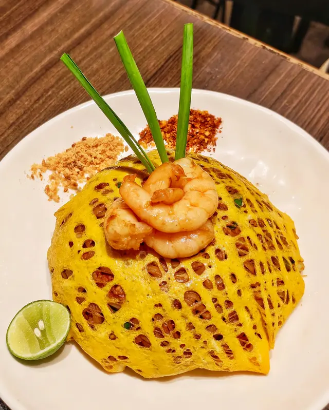 泰式炒鮮蝦金邊粉🍝賣相超靚,佢哋用蛋漿🥚做咗個罩蓋住金邊粉上枱勁吸睛,金邊粉吸滿🇹🇭泰式酸辣醬汁,鮮蝦爽口彈牙🍤,微辣酸甜滋味恰到好處好好味。