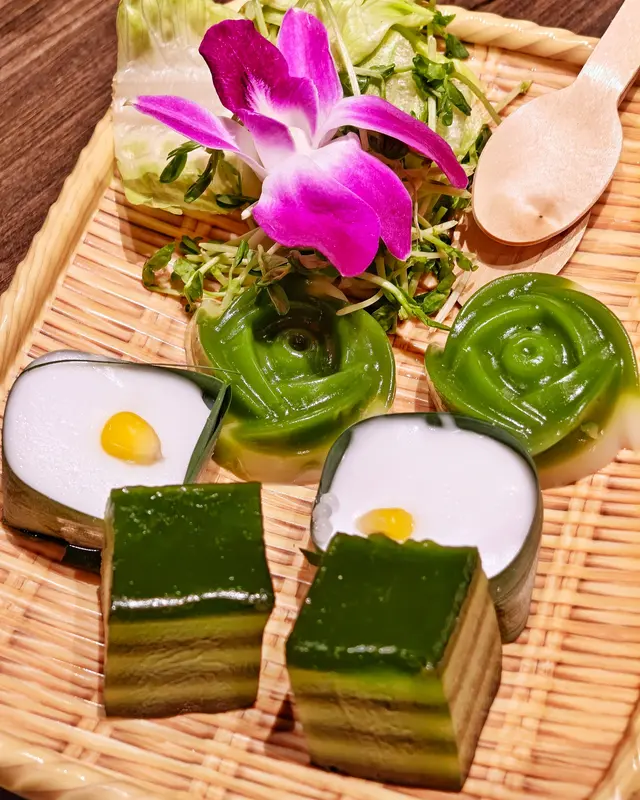 最後泰式甜品拼盤🍮,包括椰汁🥥千層糕、椰汁西米糕同玫瑰花🌹千層糕,各兩件。椰汁千層糕🍰層層分明帶椰香🥥,Q彈軟糯。椰汁西米糕🍮椰香十足🥥,玫瑰花千層糕玫瑰味清新回甘🌹,甜度輕盈唔會膩。