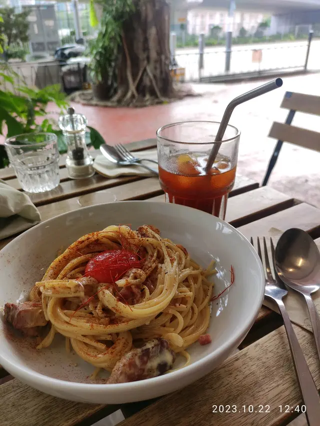 午餐時間到於是點了一個carbonara和凍的americano, 就簡簡單單一個午餐吧, 這裏環境很寫意!食物質素雖然沒有嘩一聲的驚喜, 但總算不錯;americano濃淡適中, 喜愛!