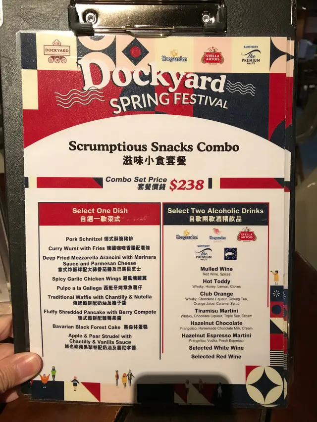 價錢:每套 HKD 238 *包括兩杯酒精飲品及自選小食乙款