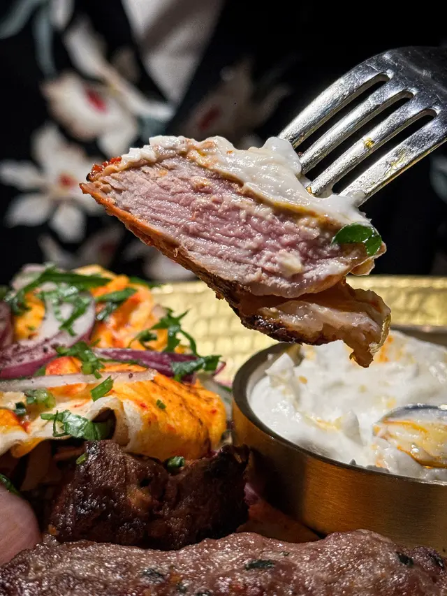 免治羊肉與牛肉加入小麥、松子同洋蔥等平衡油膩同時加添口感