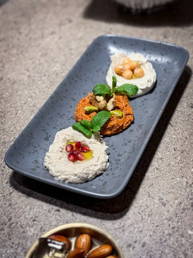 鷹嘴豆蓉、甜椒蓉同茄子蓉