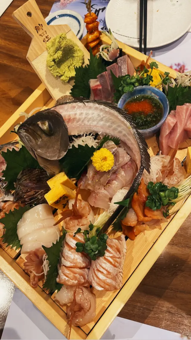 壽司蛋糕:馬糞海膽同刺身疊成三層「偽蛋糕」,插食用金箔蠟燭,老闆笑喊:「吹蠟燭要食晒㗎!」