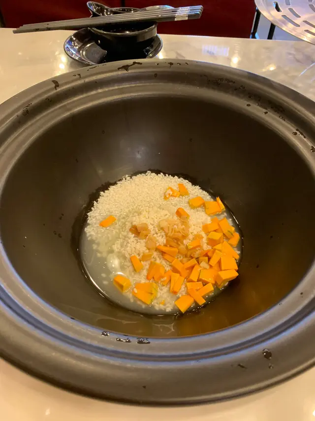 住元朗的好友約我,鳯攸南街3號好順景大廈地下13號舖。我們點左黃金套餐$298 包汽水一罐,親切的老板娘用蒸氣鍋消毒餐具後,加米、瑤柱絲、南瓜粒。首先