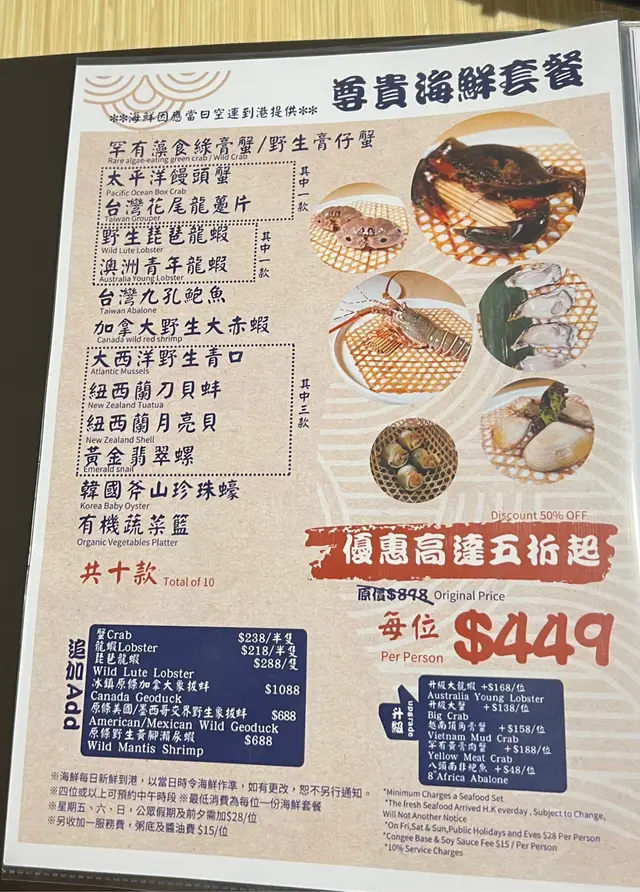 有唔同類型的海鮮套餐,今次就揀左做緊五折優惠的尊貴海鮮套餐$449/位✨✨🍴包括10款優質新鮮海鮮👅而且,全程由店員幫手,由消毒餐具到蒸海鮮,基本上坐低就有最新鮮的海鮮放入口😂懶人首選哈哈哈哈哈哈哈