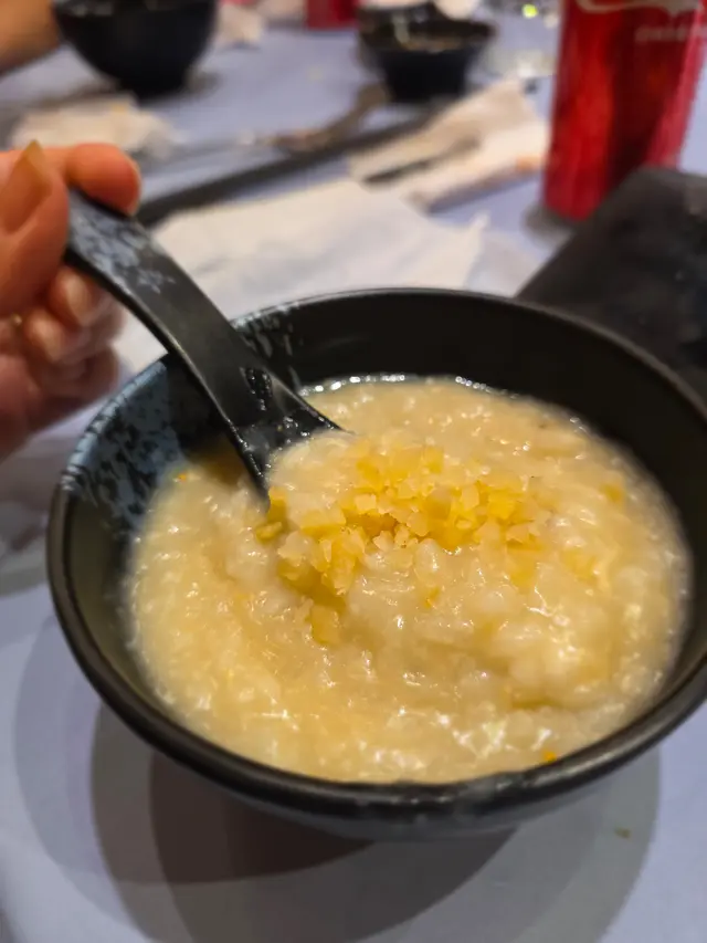 最尾碗粥吸收曬海鮮嘅精華,超鮮甜,仲送椰汁官燕做甜品