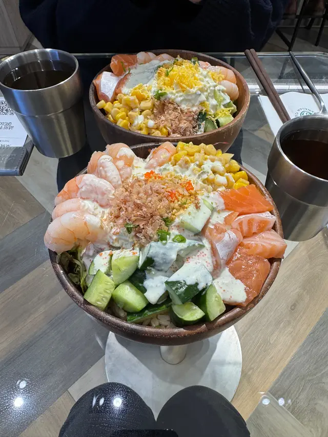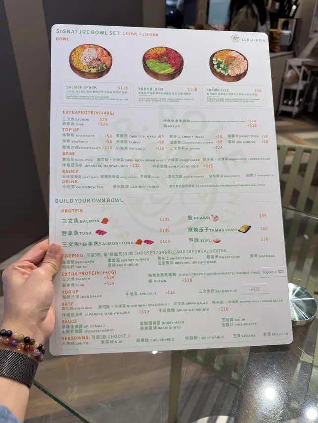 糙米飯同埋沙律菜比得起一般一般,個人覺得女仔食都啱啱好夠飽嘅,山葵乳酪醬比較健康食落去酸酸地又有山葵嘅微辣,蝦非常之爽口都幾多隻嘅,三文魚都好新鮮,係三文魚腩嚟嘅,加埋木魚絲車厘茄青瓜粟米,感覺都幾清新,間唔中食吓都開胃又清爽!