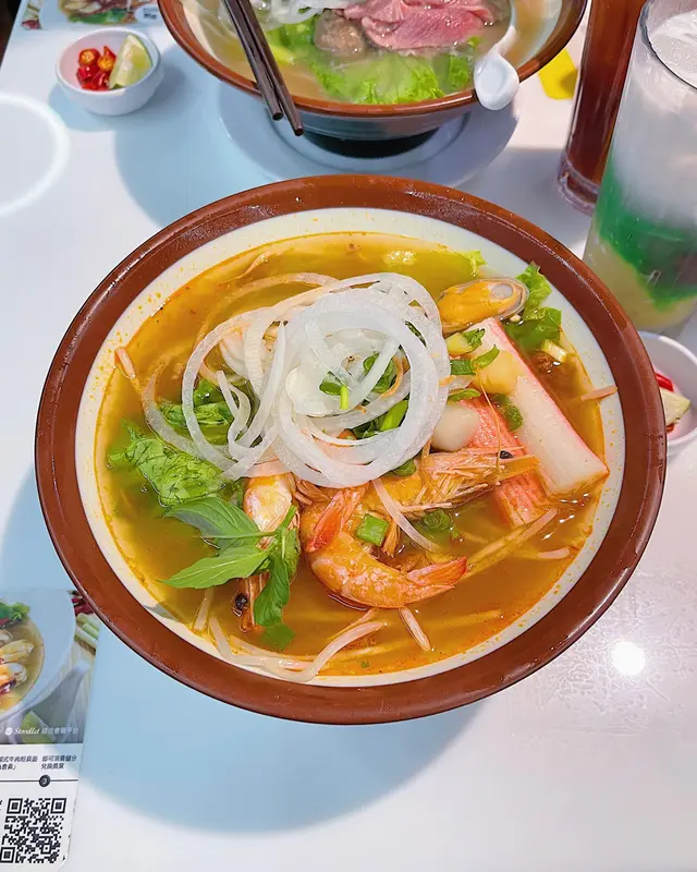個湯完全冇蝦膏味,得微酸嘅味道,落咗辣椒先會有辣味,個湯係比較深。海鮮有兩條蟹柳兩隻蝦帶幾粒帶子粒,蝦係新鮮彈牙,蟹柳都大條,帶子幾滑唔腥,青口正常,檬粉份量好多好滑,正常稱得上飽圖