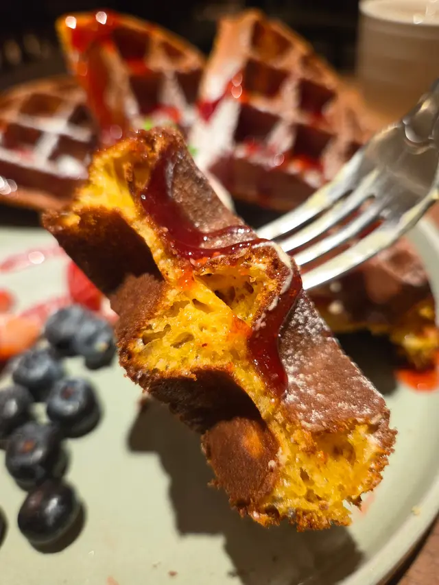窩夫🧇好香蛋味,外層夠香脆,內裡鬆軟,配埋雪糕食🍦,一冷一熱,一軟一硬,好味