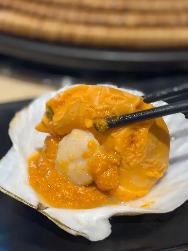 加入自家製蟹皇醬嘅大元貝,肉質爽甜,個肝勁肥美!
