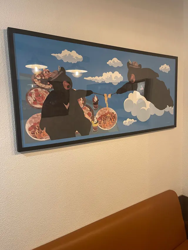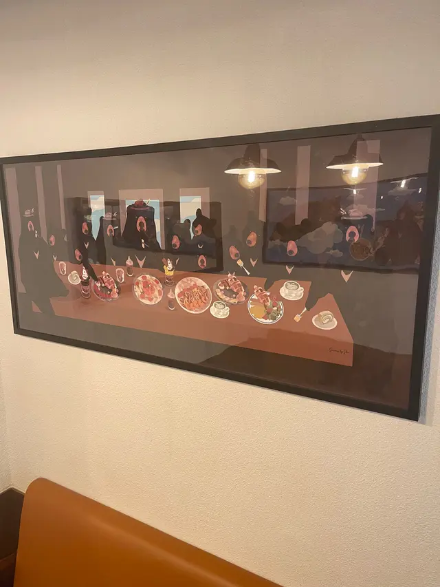 呢間Black Bear嘅裝修有啲似日式cafe,基本上好多個位都好好打卡,尤其係入面兩幅畫,有「最後的『Bear』餐」,好得意。被安排喺入面近窗口位置,座位闊落好舒服。