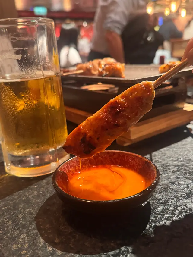 免治雞肉棒加月見一定會食 雞髀肉就嫩滑連皮🐓