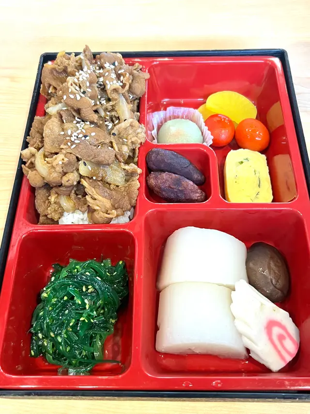除了牛肉之外,還有番薯、蘿蔔、冬菇、玉子燒、蕃茄、海帶等等,非常豐富,盒內還有一顆蜜瓜大福,作飯後甜品非常合適。