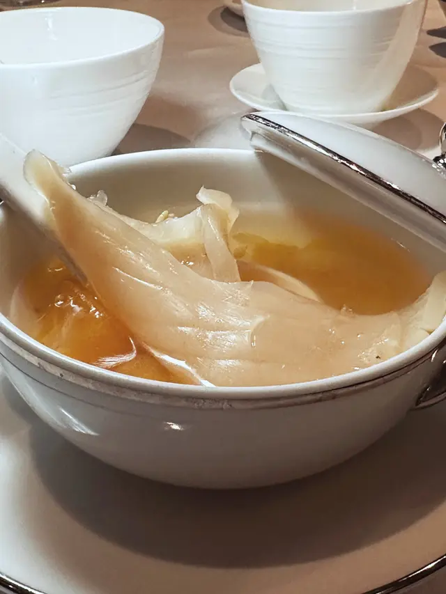是夜飲到既係「蜜瓜天籽蘭花燉花膠湯」,用上大大件花膠,湯頭亦都相當甜,很喜歡
