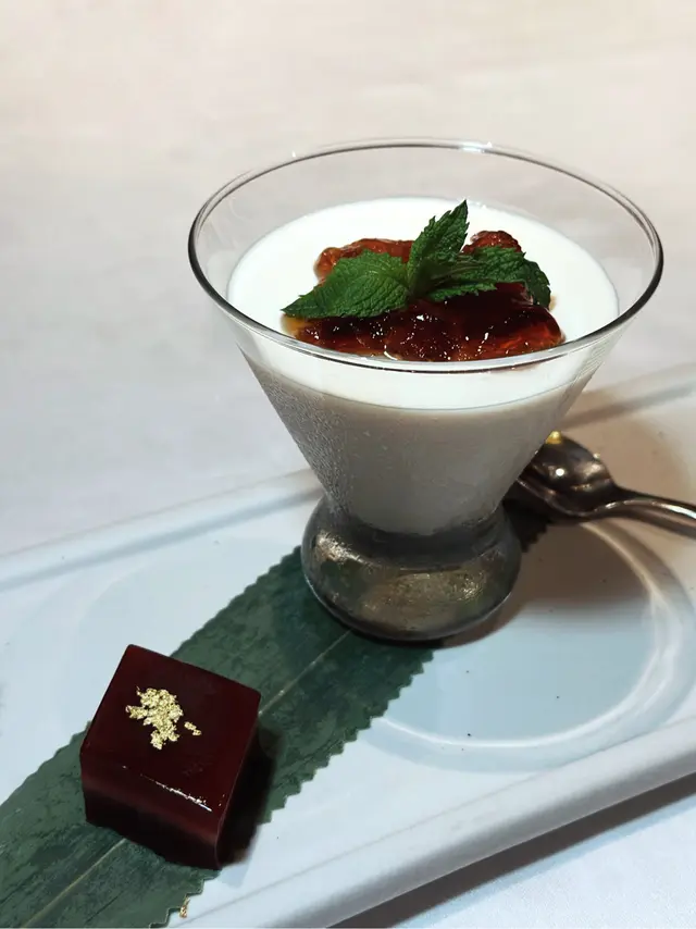 一式兩款嘅甜品— 「黑糖桃膠薑汁奶凍、金箔新疆棗皇糕」,前者奶香十足,齒頰間樓有薑汁嘅香氣; 後者則甚為Q彈~