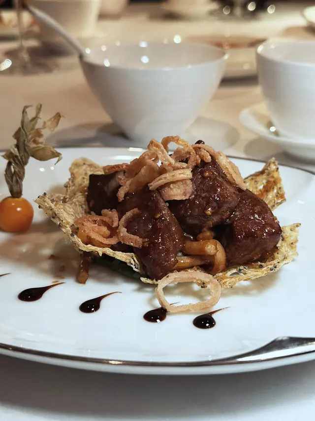 「蔥香芥末炒澳洲和牛粒」嘅芥末味道都頗重,亦屬平穩之作