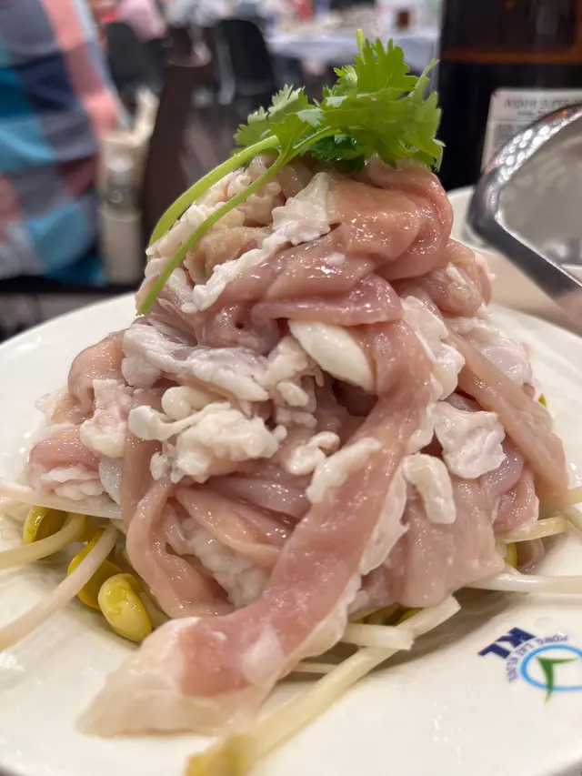 啱啱上枱嘅雞最嫩滑,豬粉腸又香又嫩,唔韌,呢個要趁熱食,擺咗一輪就會老了