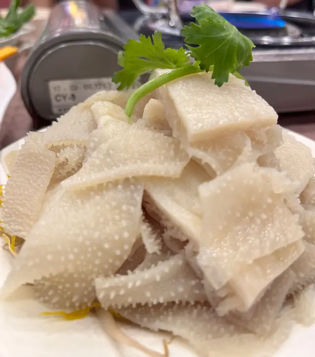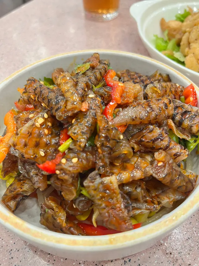 涼拌辣魚皮,我唔係好食得辣,係就係辣啲,但好正,瞇埋眼食以為自己食緊海蜇頭,點解世上會有咁爽嘅魚皮㗎!