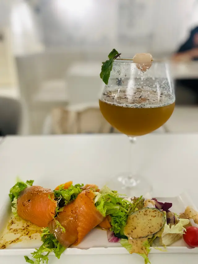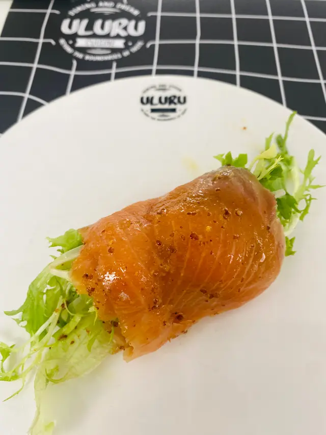 厚切嘅三文魚片包着新鮮嘅蘆筍卷,味道清新得來又開胃
