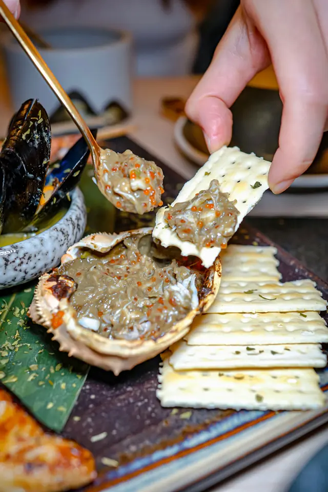 甲羅燒仲有滿滿嘅鮮蟹肉同蟹籽,放上紫菜梳打餅上面食就最適合不過🤓。