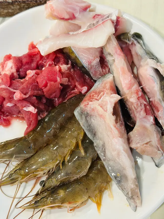 🍲火鍋配料我主要試咗牛展、牛舌、滑牛同魚頭。牛展同牛舌切得薄,淥兩淥就食得,口感唔錯;滑牛嫩,唔會太韌;最特別有魚頭,幾新鮮,另外自助區亦有蔬菜及丸類