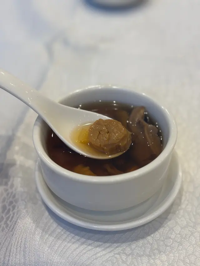 茄汁煎虎蝦、蠔皇5頭鮑魚、雲南野菌日本元貝燉湯係按人頭畀,鮑魚既大隻又炆得腍,依個燉湯同任飲嘅老火湯都超足湯料🥣