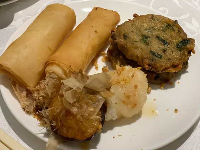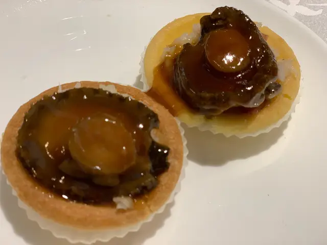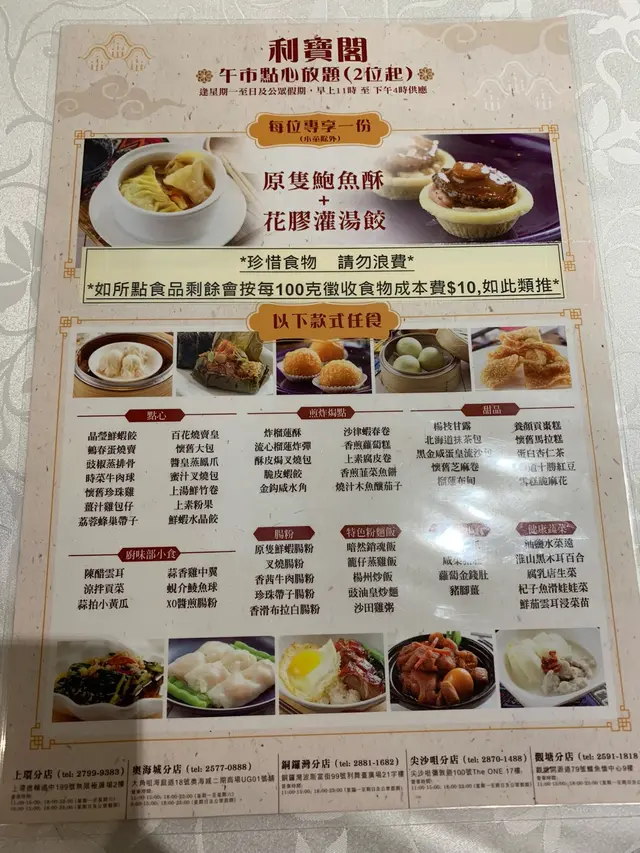 一開始每人都送了花膠灌湯餃(好食),原隻鮑魚酥(偏喊)各一客,任食任叫的點了鮮蝦餃(ok),時菜牛肉球(偏「淋」),百花燒賣皇(ok,有別於一般