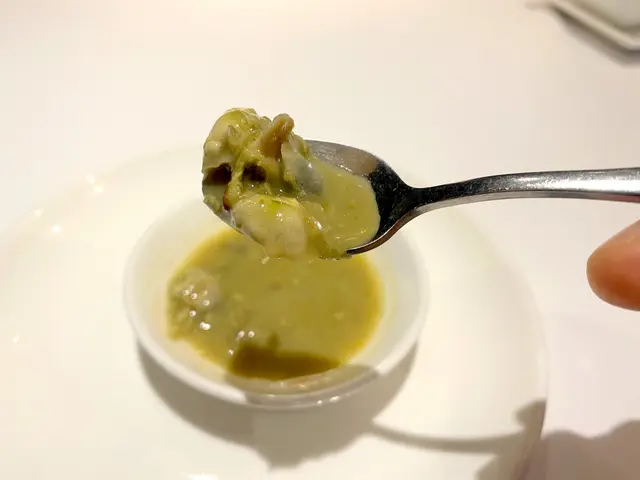 鯪魚球口感彈牙之餘,配上香脆可口的米通,口感極為討好,加上魚香味濃,但是這樣吃已經非常美味,但是再配上鹹香的蜆蚧一起吃則更有層次感!