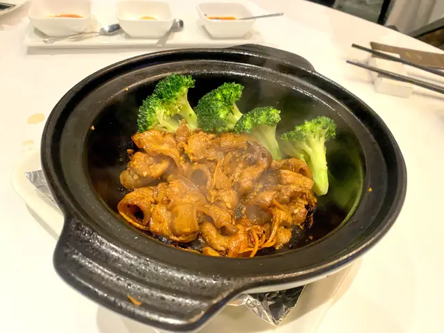 已經燜好五花腩放進熱騰騰的瓦煲內,而侍應在上菜時把它多炒幾下即是香氣四溢,非常給人又誘人!