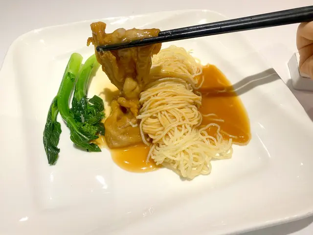 去了骨的鵝掌吃上去更為方便,而鵝掌的味道非常濃郁,配上充滿蛋香味有彈牙的全蛋麵和香濃的鮑汁一起吃,滋味又可口!