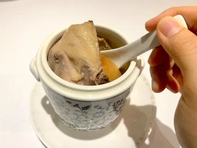 在評論乳鴿湯的味道之前,實在要讚一讚他們的慷慨! 這燉盅看似少少,但事實是相當有深度,能夠放入原隻乳鴿之餘,湯的份量大概是兩碗。喝了這兩碗湯再吃點乳鴿,已經有相當飽肚的感覺!