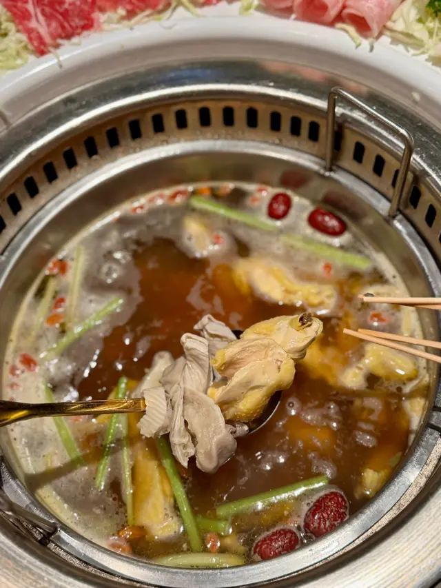無骨雞肉質超級嫩滑有彈性,豬肚口感脆嫩,湯底愈煲愈入味,黑蒜味濃郁,湯底滋潤。